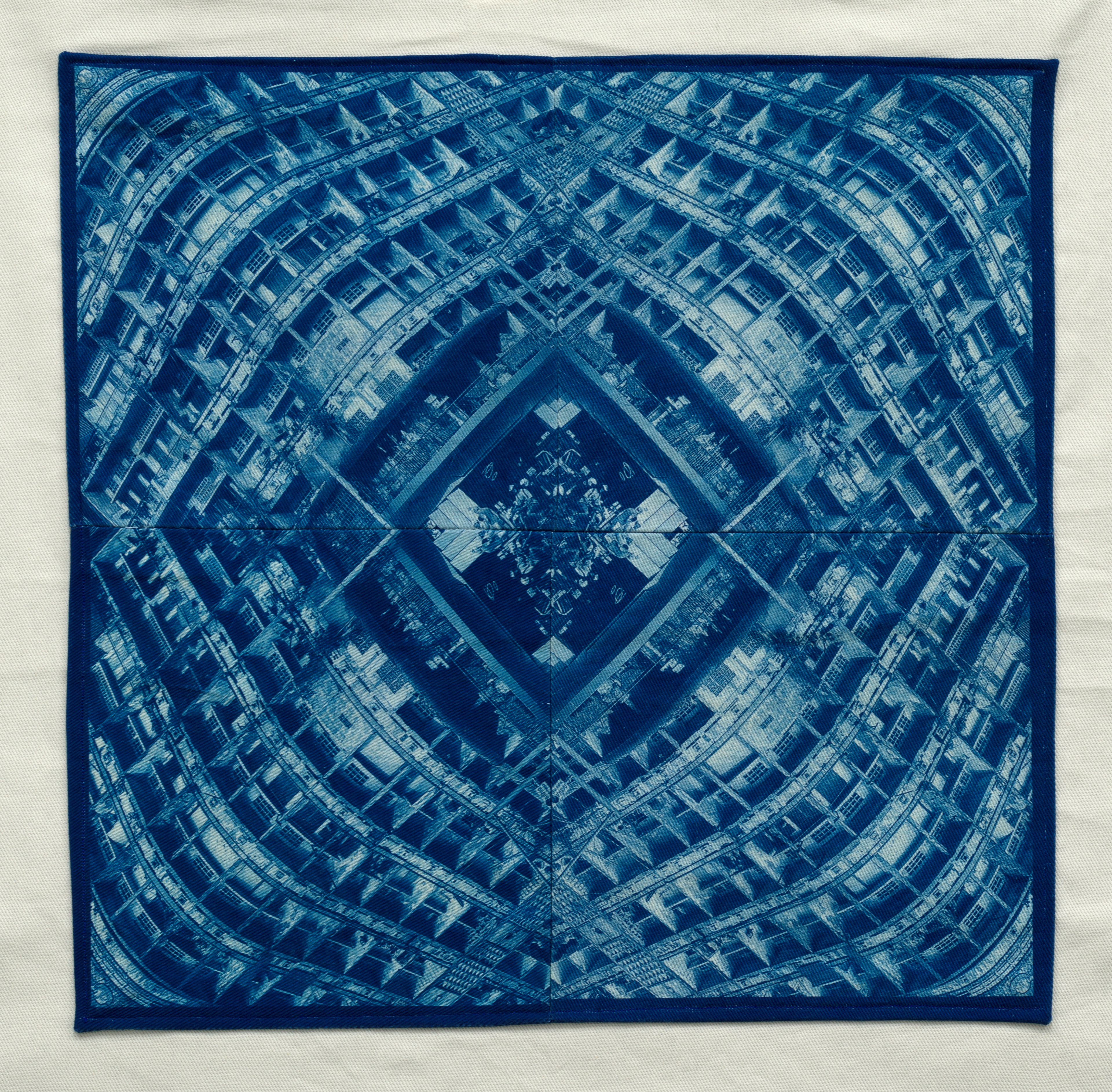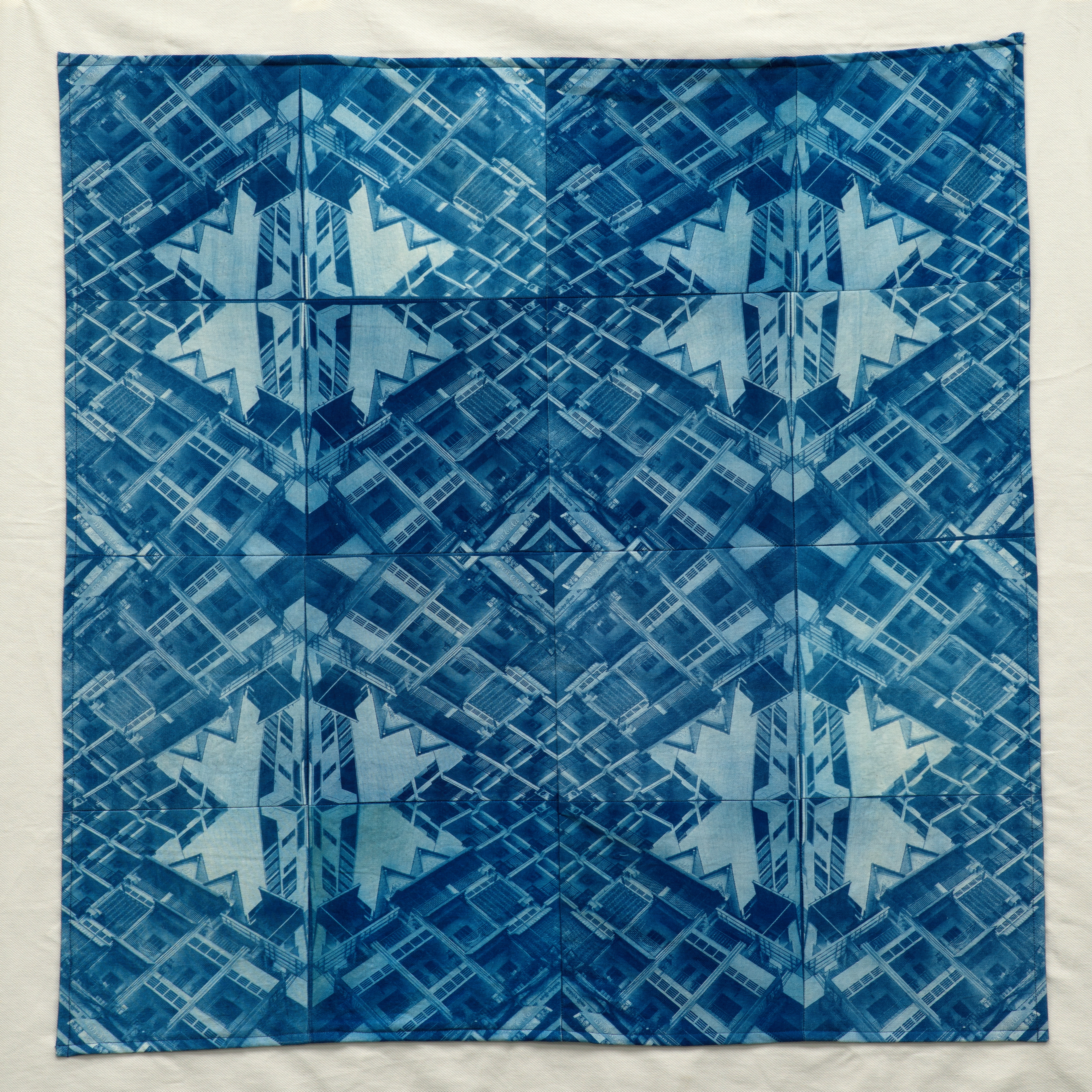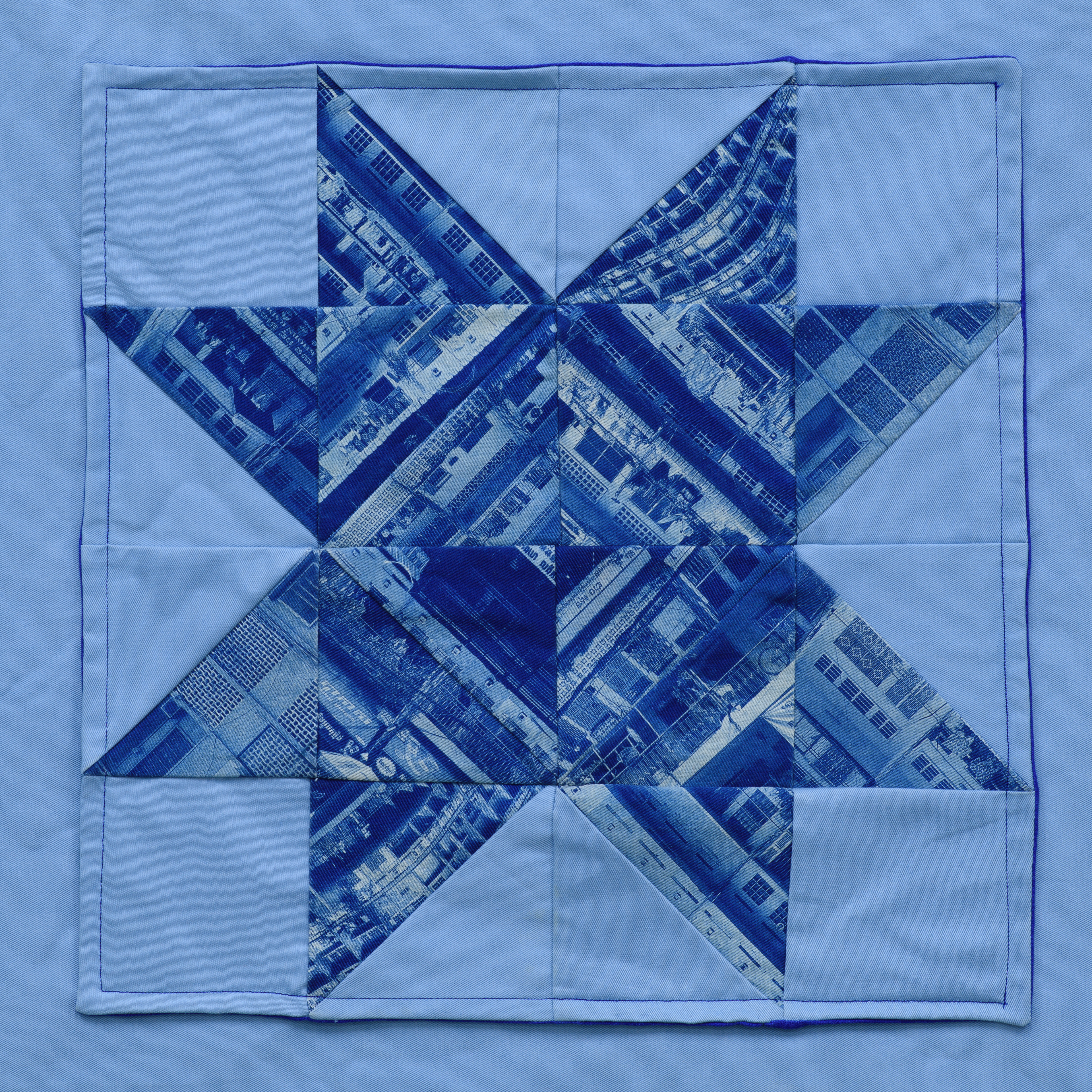 I love printing cyanotypes on fabric and using various sewing techniques as a way to reimagine the city’s built environment. My scissors and sewing machine enable me to patchwork together heritage buildings with newer construction, uproot and transplant street trees, reallocate public space, and more. The process of deconstructing urban scenes and literally stitching the city back together in new and interesting formations allows me to add novelty and abstraction to familiar cityscapes.